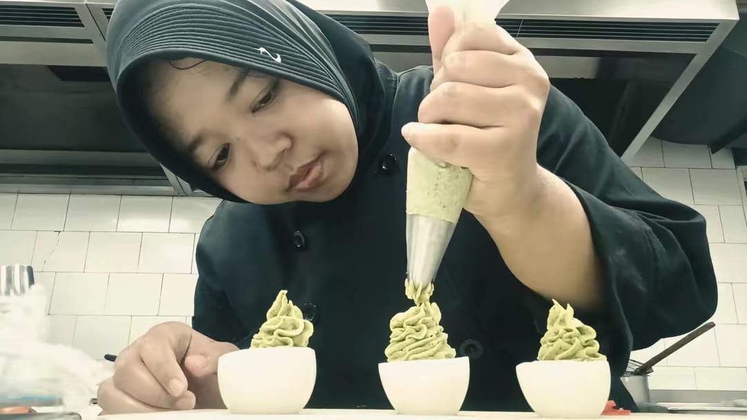 Mahasiswa program studi pendidikan tata boga yang tengah menjalani program magang di Hotel Mercure Surabaya Grand Mirama menunjukkan kontribusi nyata melalui pengembangan menu appetizer baru berbasis telur. Inovasi ini diharapkan tidak hanya mendukung operasional hotel, tetapi juga menjadi sarana pembelajaran praktis bagi mahasiswa dalam lingkungan industri. Selama masa magang, mahasiswa mengamati bahwa variasi hidangan pada section appetizer, khusunya menu berbahan dasar telur, masih terbatas. Terinspirasi dari temuan tersebut, mahasiswa mengusung pengembangan hidangan stuffed egg sebagai alternatif menu appetizer yang sebelumnya belum tersedia di hotel tersebut.